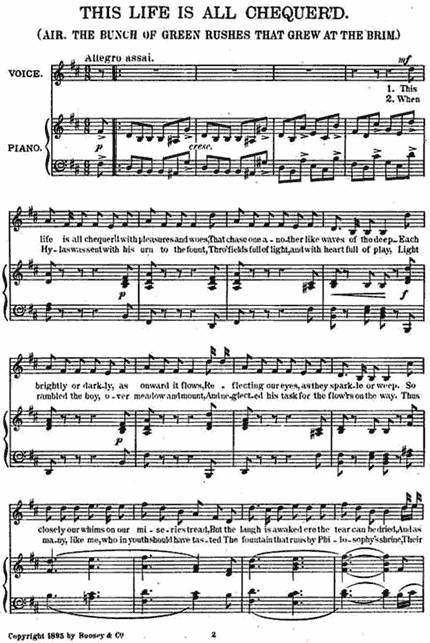 Below is the musical score of the air published in 1895. Note, the speling of ‘checkered’ is different on the music score.